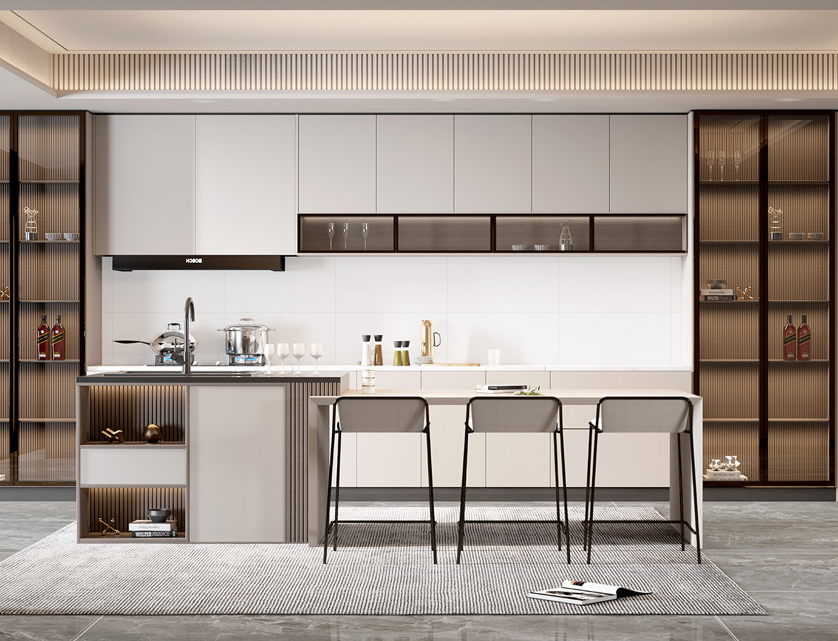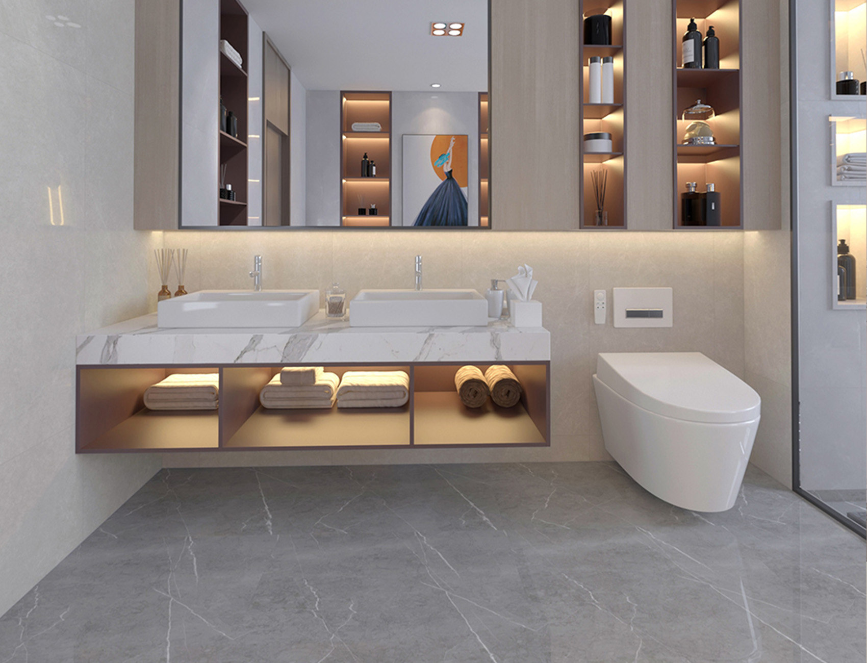 • 全屋瓷磚+巖板定制